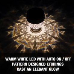 - дизайн с акценти: тези светодиодни светлини имат красиви дизайни, гравирани в капака с прозрачна светлина, който създава елегантен декоративен ефект шарено сияние на вашата пътека, градина, двор или всяко външно пространство.