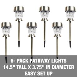 - размери: получавате 6 LED светлини за пътеки с размери: 14,5″ h x 3,5″ диаметър