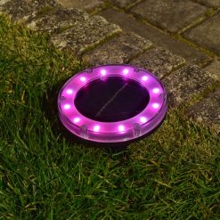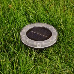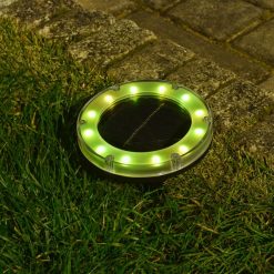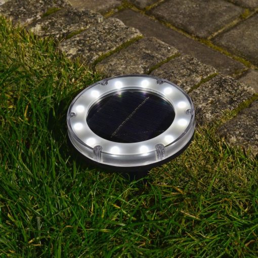 - по-желани функции: захранван от слънчева енергия 1200 mah акумулаторна батерия; аuto включено през нощта/изключено; 12 led крушки на диск излъчват общо 80 лумена; 4 диска в пакет