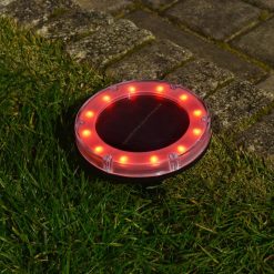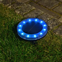 както осветявате, така и осигурявате стилна нощна атмосфера на вашите стълби, градини, тревни площи или всяко външно пространство с нашите блажени външни светодиодни соларни дискови светлини. Захранвани от слънчева енергия с акумулаторни батерии от 1200 mah, тези ултра-атрактивни светлини излъчват общо 80 лумена, автоматично се включват през нощта, автоматично се изключват през деня и разполагат както с плътно бяло, така и с многоцветни автоматично променящи се светлинни режими. просто ги вкопайте в земята с техните 4-инчови пластмасови колове! водоустойчива, изключително издръжлива пластмаса за употреба и от сезон след сезон. 12 led крушки на диск; 4 диска в опаковка. предлага се с 1-годишна гаранция… намерете своето блаженство.