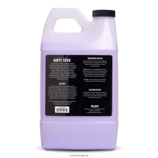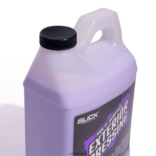 Slick products многоповърхностна външна облицовка подновява и бляска повърхностите, като същевременно намалява обезцветяването, напукването и избледняването. този немазен разтвор се използва най-добре върху гума, пластмаса и винил, осигурявайки копринено гладко покритие. готовият за употреба почистващ разтвор трябва да се нанесе директно върху повърхности с пръскачка или да се напръска върху кърпа и след това да се избърше. съдържа свеж аромат на грозде.