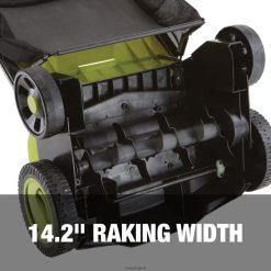 копчето за контрол на дълбочината с 5 позиции настройва дълбочината на гребене – от -0,18 инча (4,5 мм под почвата) до 0,4 инча (10 мм над почвата) – и дълбочината на фрезоване – -0,375 инча до 0,2 инча – за да отговаря на вашата морава. и включената чанта за събиране от 10,6 галона на Sun Joe предпазва вашия двор чист от отломки.
