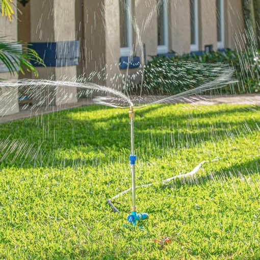 - 3-раменен въртящ се спринклер – върти се на 360o за равномерно разпръскване на водата до 1390 кв. фута