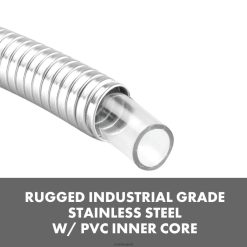 маркучът от неръждаема стомана, който е здрав като гвоздеи! Лекият маркуч от неръждаема стомана на aqua joe е просто последният маркуч, от който някога ще се нуждаете! изработен от висококачествена промишлена неръждаема стомана клас 304 за надеждна употреба през целия живот във вашия двор и градина. няма да се среже, смачка или напука – няма да се разцепи, прегъне или да се нагорещи на слънце. това е единственият маркуч, който работи толкова трудно, колкото и вие. здрава, почти неразрушима и устойчива на пробиване външна обвивка от неръждаема стомана обгражда гъвкаво PVC вътрешно ядро за максимална производителност и издръжливост и включва ограничителни яки за огъване и издръжливи алуминиеви фитинги във всеки край за неограничен воден поток и сигурни, устойчиви на течове връзки. без олово, без фталат и без bpa. идеален за поливане на цветя, измиване на камиона, изплакване на мебели във вътрешния двор или свързване към спринклер или машина за миене под налягане.