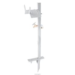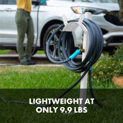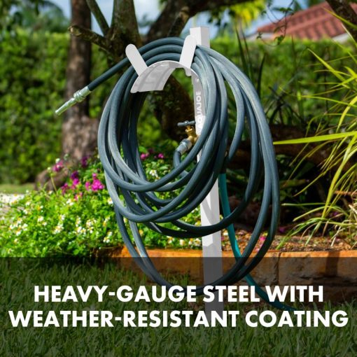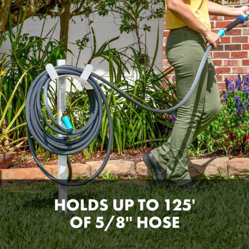 високият 42,5 инча прахово боядисан прът и извитата закачалка са климатични устойчиви за дълготраен блясък и правят елегантно допълнение към всеки градински пейзаж. тежката стоманена конструкция и сигурната 2-точкова система за закрепване на почвата ви позволява да съхранявате до 125 фута от вашия стандартен градински маркуч по стилен начин, като същевременно ви осигурява лесен достъп до вашия кран. не оставайте в капан срещу къщата си – просто свържете източника на вода от едната страна, маркуча от другата и преместете стойката на по-удобно място, далеч от храсти, деликатни насаждения или тесни помещения. солиден месингов накрайник осигурява сигурна, устойчива на течове връзка за години на надеждна работа във вашия двор и градина.