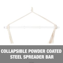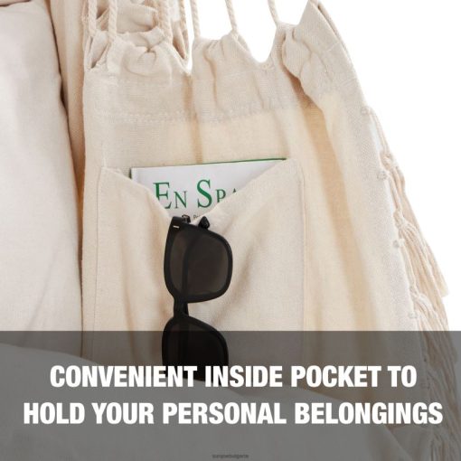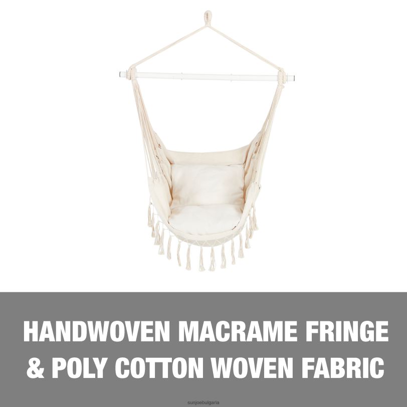 този стилен, невероятно удобен хамачен стол с ресни е идеален за добавяне на малко усет към вашия вътрешен декор и може да добави перфектния личен щрих към вашето външно пространство! този стол-хамак се отличава със здрав тъкан, дишащ полиестерен и памучен материал със 100% ръчно изработени/тъкани ресни по протежение на предния край на стола. включва и 2-квадратни възглавници за максимален комфорт. той също така разполага с вграден джоб отстрани, за да можете да държите своя телефон, ipad, книга, напитки и др. лентата за разпръскване е сгъваема стоманена конструкция с прахово покритие, която я прави лесна за съхранение през студения сезон, като същевременно осигурява издръжливост, когато се използва. Ръчно изработен край на примка за въже за класически стил и издръжливост с капацитет на тегло 250 lbs. целият хардуер за окачване е включен с верига и всички винтове, необходими и за монтиране на закрито. предлага се с една година гаранция… намерете своето блаженство!