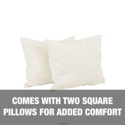 - удобен: включва 2 квадратни възглавници с размери 14,5″ x 14,5″ в подходящ цвят за допълнителен комфорт.