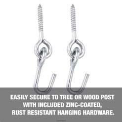 - лесна настройка : удобно включен, устойчивият на ръжда поцинкован хардуер (2) винт за окото и (2) куки улесняват закрепването на вашия хамак върху дърво или дървен стълб