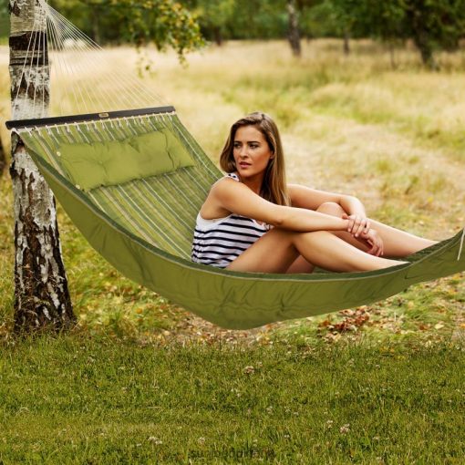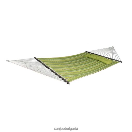 - превъзходна конструкция: изработена от лесна за почистване, водоотблъскваща, UV защитена, устойчива на цвят олефинова тъкан. ватираното легло за хамак има уникален двоен s-шев, който помага на хамака да се приспособи към тялото ви задопълнителен комфорт, докато пълнежът остава на място. издръжливо 6-милиметрово полиестерно въже се простира от разпръскващите лостове до краищата и издържа на сурово време