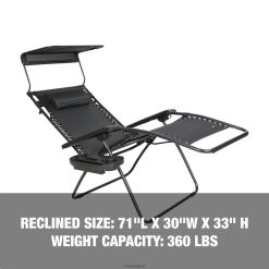 инструменти | Sun Joe bliss hammocks gfc-438wbk гравитационен стол със сенник, поднос за напитки и възглавница | 30-инча широк xl | устойчив на атмосферни влияния и ръжда | Капацитет 360 lb 6PT8T895