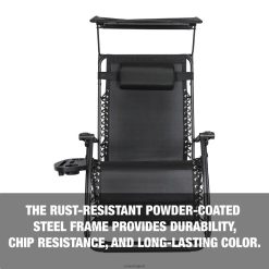 инструменти | Sun Joe bliss hammocks gfc-438xwbk гравитационен стол със сенник, поднос за напитки и възглавница | 33-инча широк xxl | устойчив на атмосферни влияния и ръжда | Капацитет 360 lb 6PT8T896