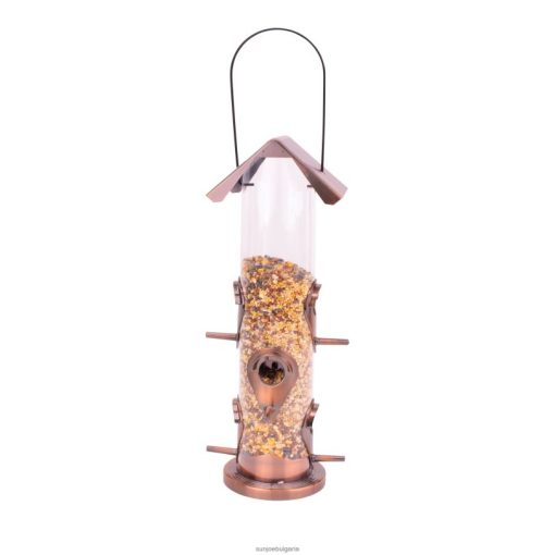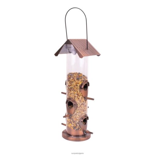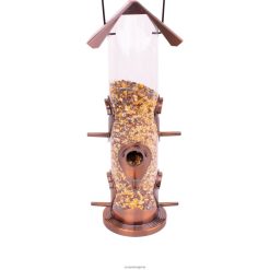 - превъзходна конструкция: изработена от пластмаса с атрактивно антично медно покритие с 6 отвора за хранене и 6 кацалки, така че няколко птици да могат да се хранят едновременно прозрачната тръба улеснява незабавното проследяване на нивата на семената