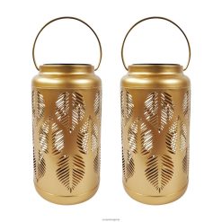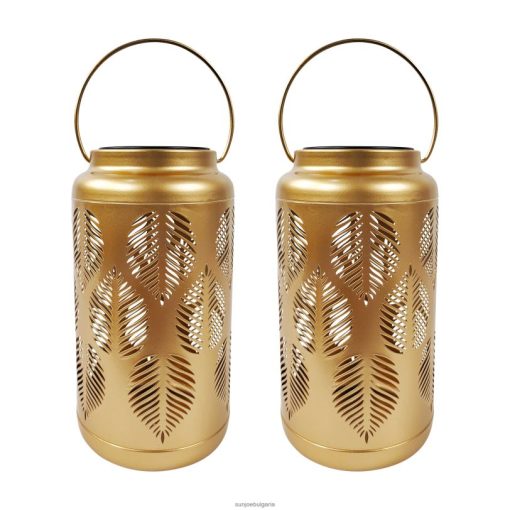 инструменти | Sun Joe bliss outdoor bsl-311-g комплект от 2 соларни светодиодни фенера с дизайн на тропически листа и ръчно рисувано покритие | 9 инча висок | водоустойчив ip44 (златен) 6PT8T877