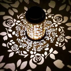 с блаженството на открито декоративни слънчеви светодиодни фенери, вие ще създадете красив осветен дизайн, който ще добави атмосфера и чар към всеки живот, градинарство или вътрешен двор. получавате комплект от 2 соларни фенера, които са големи с размери 9″ височина x 5″ в диаметър и имат функция за залез до зори, така че автоматично да светят през нощта и да се изключват на зазоряване. включващ топла светодиодна светлина с батерия от 600 mah и поликристален слънчев панел, който ви дава 6-8 или време за работа на светлина, когато е напълно зареден през деня за 4-6 часа на слънчева светлина. проектиран с шарка на роза, така че при осветяване създава красив дизайн и сенки, които са топли и приятни за окото. фенерът е издръжлив и изработен от висококачествен метал с лазерно изрязан дизайн, след това ръчно рисуван в великолепно полирано антично боядисано покритие. тези слънчеви фенери също са водоустойчиви IP44, така че могат да издържат на стихията и се доставят с дръжка, за да можете да ги окачите или поставите на маса. това е идеалподарък за любими хора, празници, домакинство или за всеки, който иска да добави малко чар в жилищното си пространство. предлага се с 1 година гаранция… намерете своето блаженство !