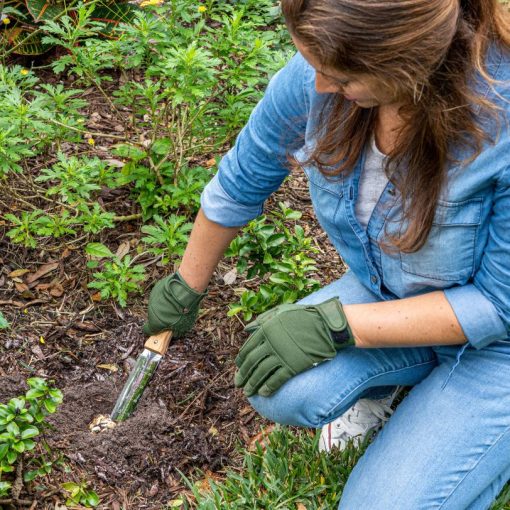 - инчови маркировки на японското острие от неръждаема стомана ще гарантират, че вашите растения и луковици са засадени на точната дълбочина