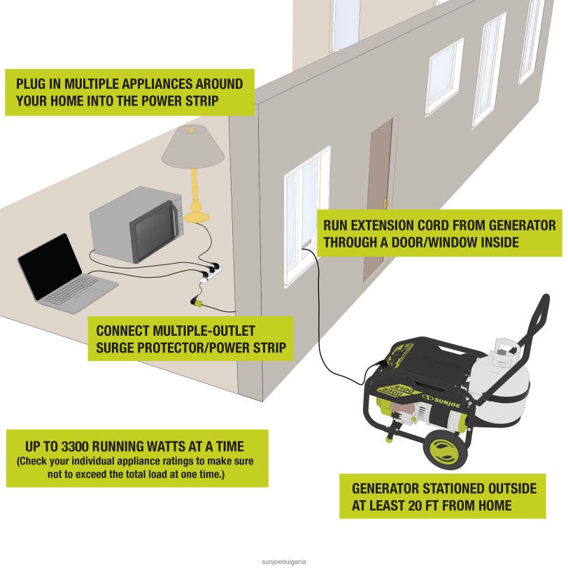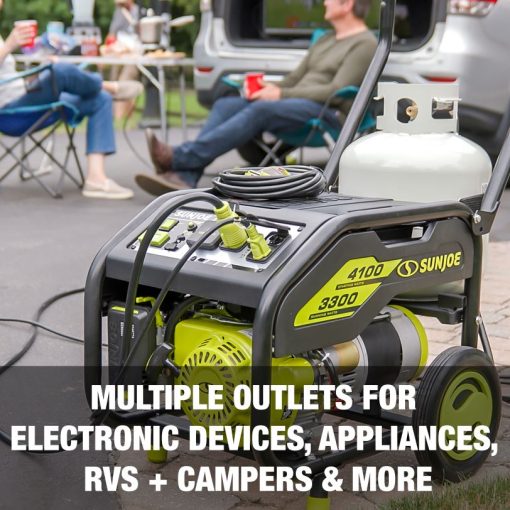 инструменти | Sun Joe sjg4100lp преносим генератор на пропан | бутон електрически + старт с откат | захранваща охладителна система | 4100 начални вата | 3300 работни вата | с 24v 2.0-ah батерия и заря