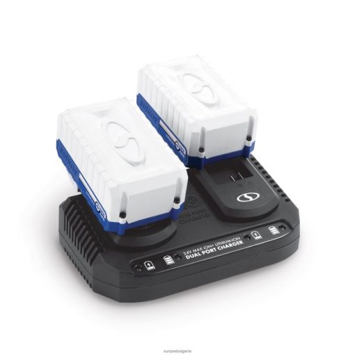 включете в контакта + захранване! увеличете две батерии наведнъж с 24vchrg-dpc 24-volt* dual- порт зарядно от снежния джо. проектирани да работят изключително с всички 24-волтови* литиево-йонни батерии snow joe + sun joe ionmax, дизайнът с два порта ги захранва за 1 час 50 минути, така че можете да поемете управлението на вашия кабелess електрически инструменти и се върнете към задачата си за по-малко време. оборудван с термична защита, защита от пренапрежение и свръхток, 24vchrg-dpc безопасно зарежда и презарежда вашите батерии ionmax без никакъв риск от повреда на батерийния пакет. отидете с joe за чиста, тиха и удобна батерия, която е по-добра за вас, вашия квартал и околната среда – както и безопасен и надежден начин за захранване на вашия 24-волтов* безжичен дом, двор + градински инструменти.