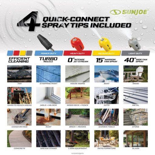 отстранете мръсотията. справете се с най-трудните си задачи за дома, на открито и автоматичното почистване с технология за борба с мръсотията от следващо поколение: spx2700-max 13-amp електрическа миячка под налягане от sun joe. опаковайте мощен удар с 1800 паунда на квадратен инч номинално налягане при всеки взрив! съчетавайки мощността на газа с удобството на електричеството, spx2700-max е създаден за тези, които очакват най-доброто от своите машини. Електрическият мотор с 13 ампера без дим на sun joe продухва дори най-упоритите отпадъци и мръсотия, докато номиналният дебит от 1,1 gpm ефективно измива всичко. spx2700-max се доставя с 1-литров пистолет за пяна, идеален за аериране и равномерно нанасяне на почистващ препарат върху повърхности за ефективно почистване на упорити петна. когато се борите с мръсотия и мръсотия, използвайте включената помощна четка с косми или четката с колело + джанта, за да влезете в онези труднодостъпни места, които се нуждаят от малко изтъркване. и с 3 вградени дюзи за бързо свързване, можете бързо да персонализирате спрея, за да отговаря на задачата. изберете от 0o,15o и 40o; сменете дюзите за секунди и превключете от наказваща точна струя към мощен вентилаторен спрей. изберете супер мощната турбо дюза, когато трябва да почистите още по-бързо и да унищожите мръсотията, мазнините и мръсотията при контакт. от началото до края, можете да разчитате на spx2700-max за непрекъснатата, надеждна мощност и производителност, които сте свикнали да очаквате от американския лидер в електрическите водоструйни машини. така че, когато има мръсна работа за вършене, отидете със Sun Joe!