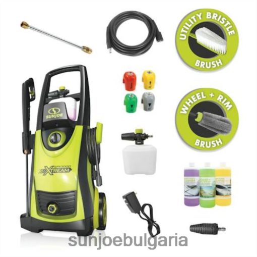 само sun joe xtream осигурява гъвкавостта, от която се нуждаете, за да се справите с различни проекти за почистване. с 4 вградени дюзи за бързо свързване, можете бързо да персонализирате почистването, за да отговаря на задачата. и когато вашата почистваща струя се нуждае от усилване на препарата, просто щракнете, за да свържете включения пистолет за пяна. или сменете една от двете включени приставки – четката с мек косъм, за да измиете твърдата мръсотияr четката за колело и джанта за премахване на упоритата пътна мръсотия.