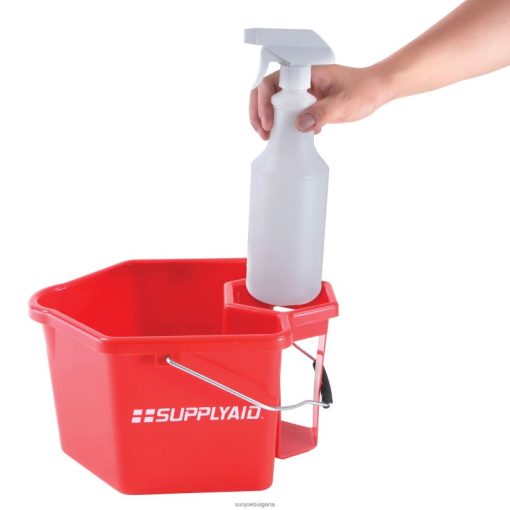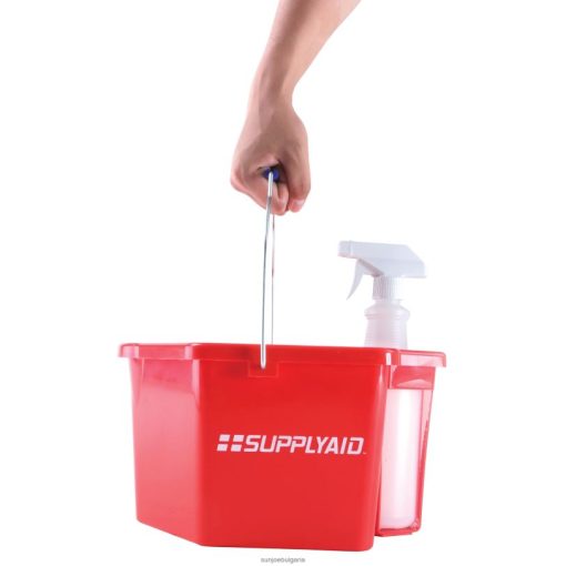 дръжте любимия си разтвор за дезинфекция под ръка с 6-литрова дезинфекцираща система от SupplyAid. яркочервената, здрава пластмасова кофа побира до 6 кварта дезинфекциращ разтвор, а измерванията кварт + литър от вътрешната страна на кофата го правят бърз + лесен за разреждане и смесване, ако е необходимо. използвайте гъба или моп, за да избършете подовете, след това преминете към вградената бутилка със спрей от 25 унции, за да почистите шкафовете и плотовете. вграденото отделение означава, че ще имате всичко необходимо, за да поддържате пространството си безупречно, под ръка. SupplyAid: правилното здраве, уелнес + основни продукти за дезинфекция, веднага.